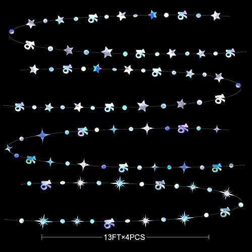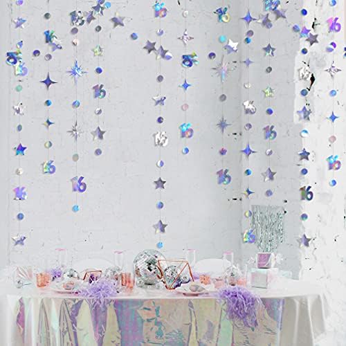 👍 Package includes – 4 strings of 13 feet/4 meters iridescent holographic number 16 sparkling twinkle star and circle dots garlands , totally is 52 feet/16 meters