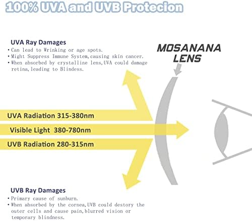 UV400 protection lens block 100% of UVA &UVB rays and offer superior anti-glare protection