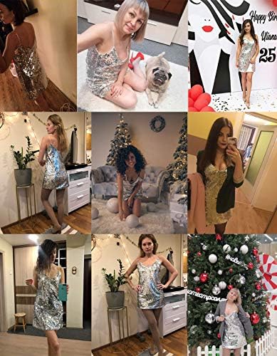 FEATURES — Sexy deep v-neck front and back,spaghetti strap,sleeveless and classic vintage sequin dress, mini dresses show off your curves,makes you look more sexy,strap stretchy but not adjustable
